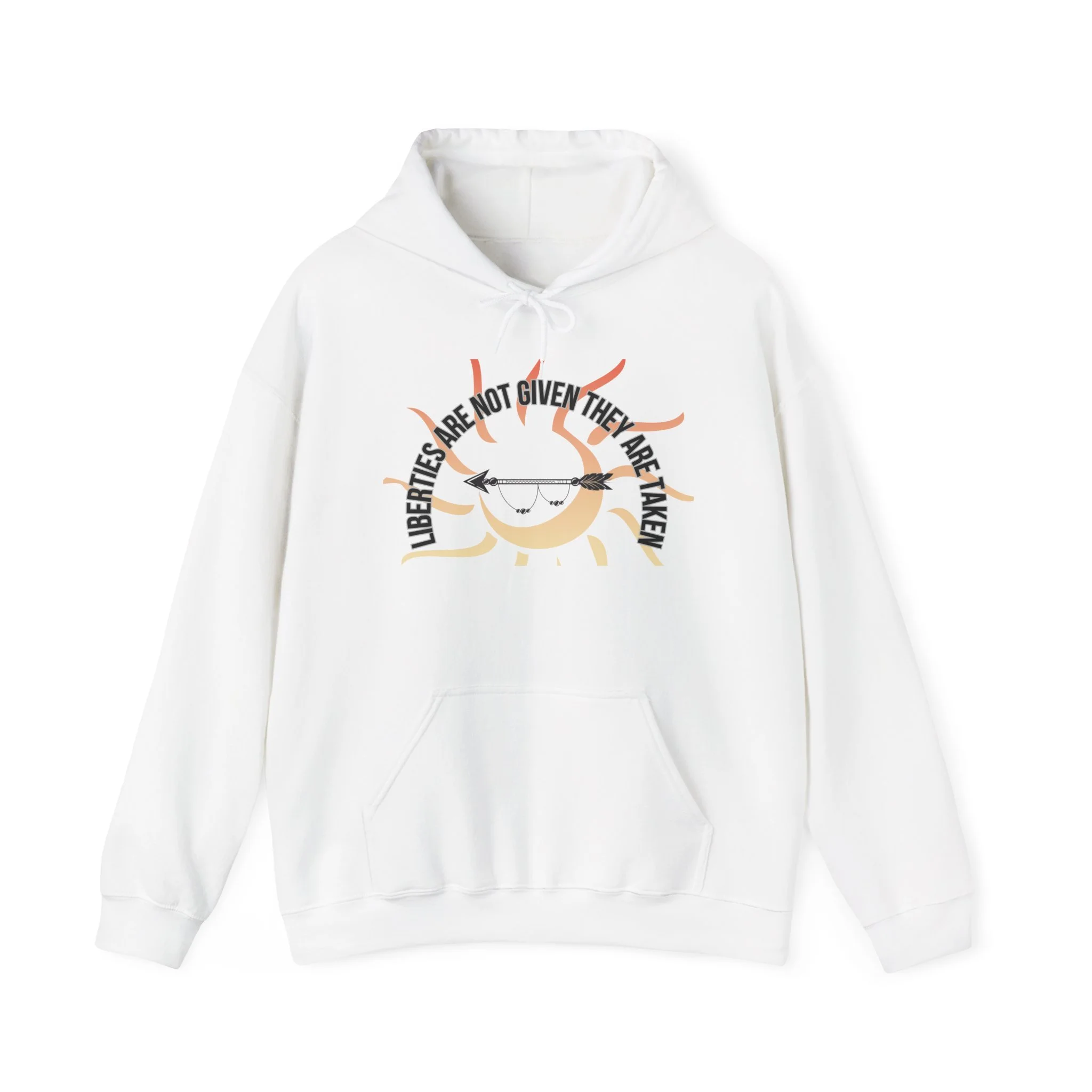This hoodie carries a quiet, thoughtful energy — soft against the skin, with a minimal literary mark that speaks without shouting. Front artwork blends a sun-and-moon motif with the curved phrase “Liberties are not given—they are taken,” giving the chest a meditative focal point. The back bears a refined serif treatment of “Aldous Huxley,” lending the piece an intellectual, booklover edge. Wear it on slow mornings with coffee, tucked into a well-loved paperback at a park bench, or layered for long walks when you want something that reads like a statement and feels like a familiar companion. The fit is classic and roomy, the hood and pouch pocket add warmth and practicality, and the subdued palette keeps the look versatile for day-to-day wear.